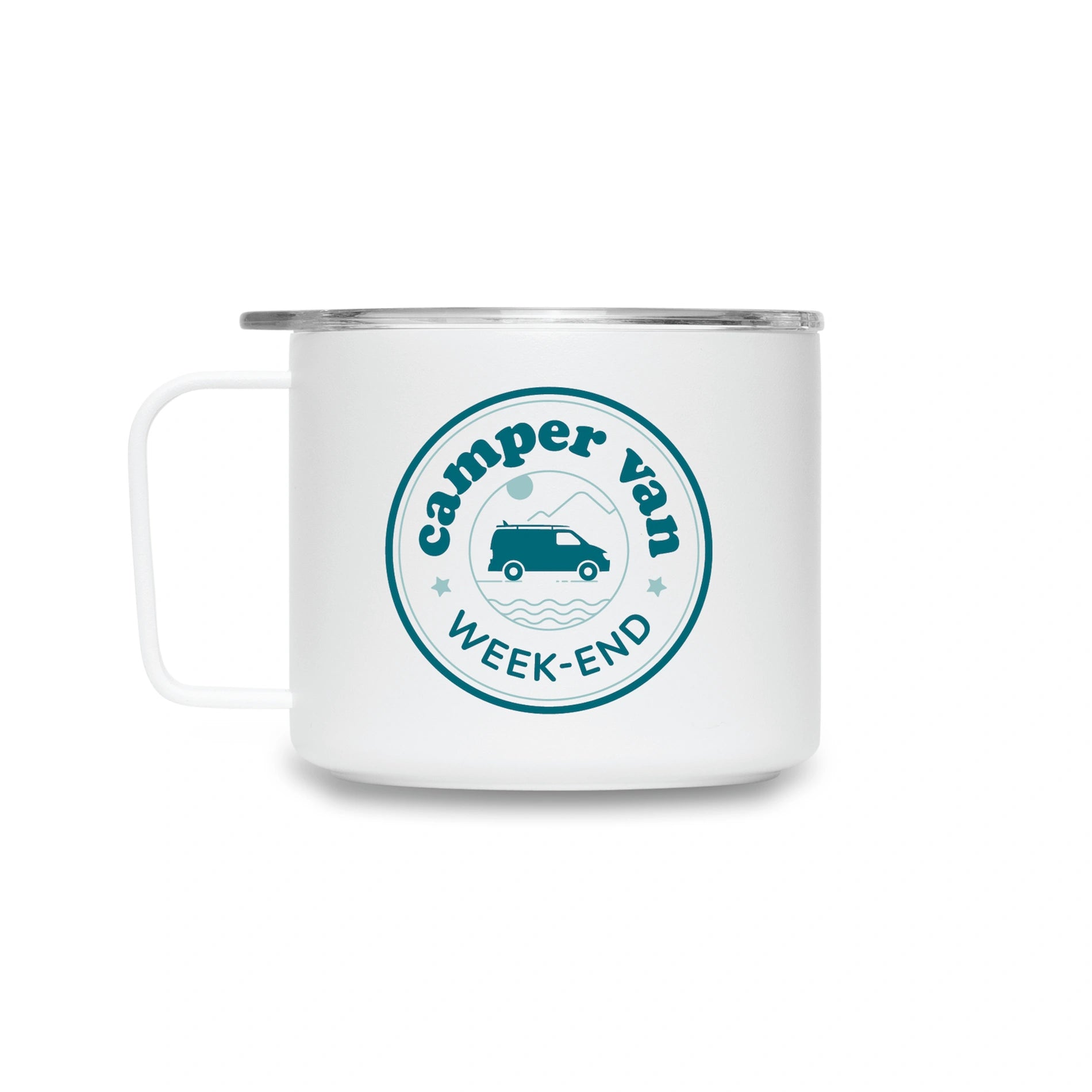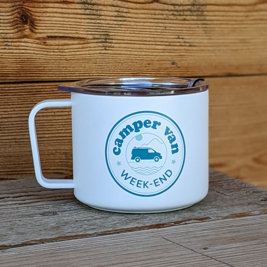 La tasse isotherme de la marque Miir et à l'image du Camper Van Week-end est idéale pour garder sa boisson chaude (ou froide) plus longtemps.