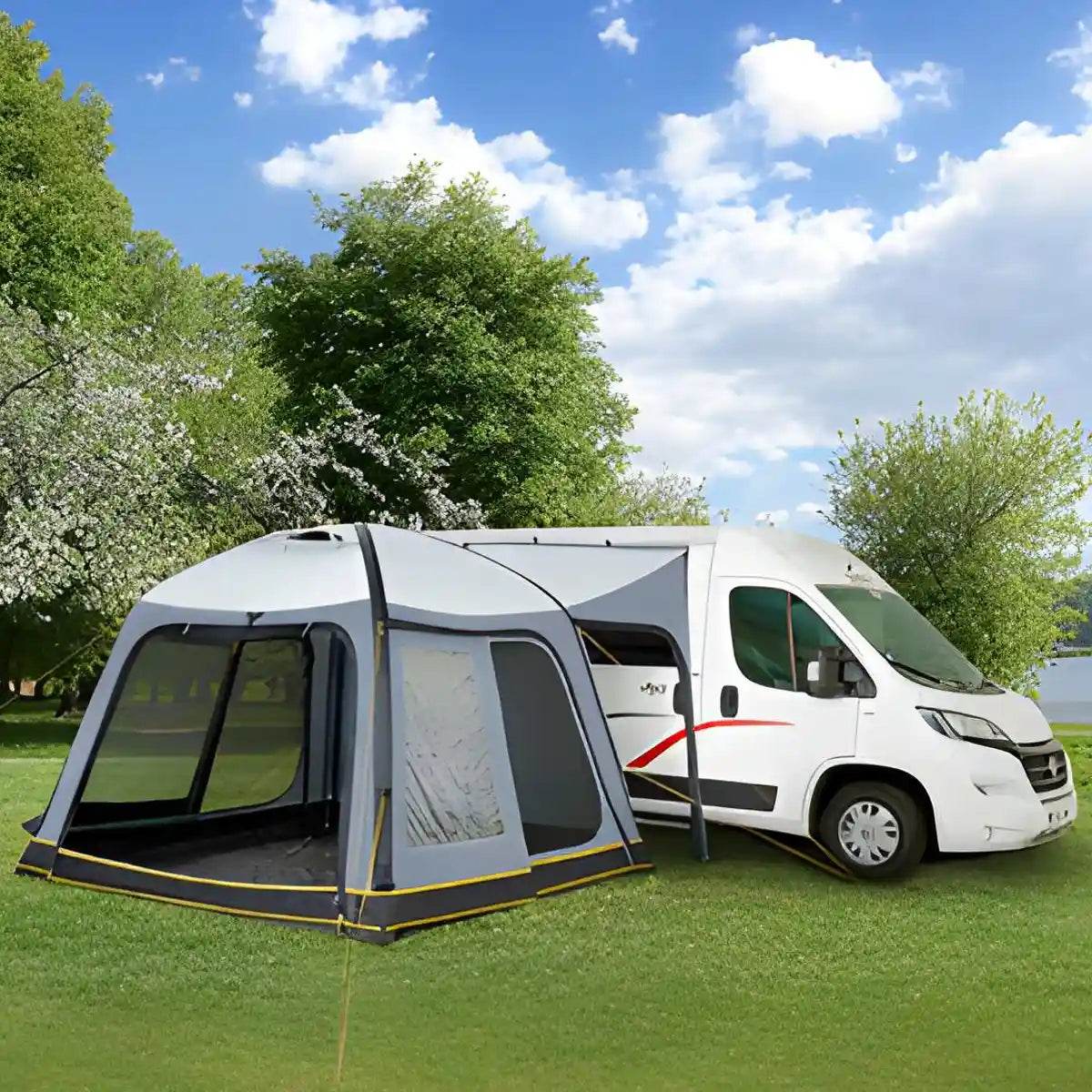 Das aufblasbare Vorzelt Santa Cruz V3 von Trigano ist ein freistehendes Vorzelt für Vans, Camper und Wohnmobile mit einer Montagehöhe von 180 cm bis 270 cm.