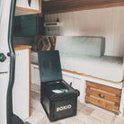 Die Trockentoiletten BoxioToilet mit Trennung der deutschen Marke BOXIO sind für Roadtrips im Van oder umgebauten Kastenwagen, Nomadenreisen im Dachzelt und Camping konzipiert.