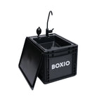 Das tragbare Waschbecken Boxio Washder deutschen MarkeBOXIOist für Roadtrips im Van oder umgebauten Van, Nomadenreisen im Dachzelt und Camping konzipiert.
