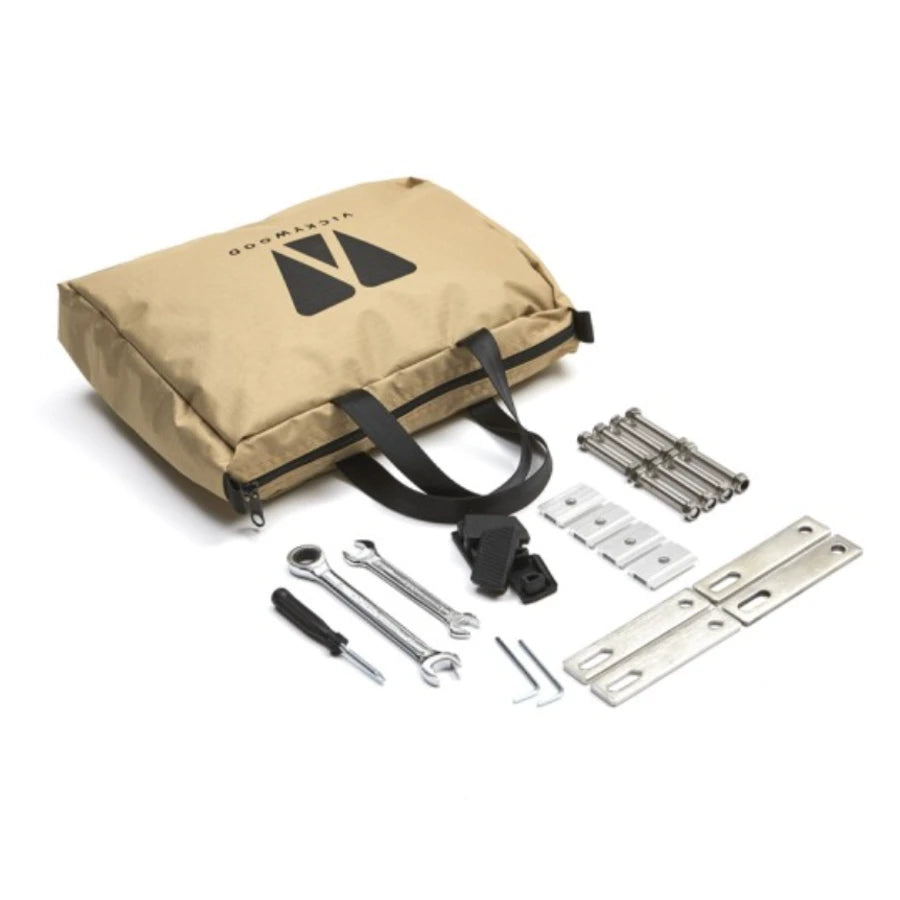 Sollte der Platz nicht ausreichen, müssen Sie die vorpositionierten Befestigungen am Dachzelt verschieben, um Ihr Fahrzeug durch Neubohren des Dachzeltbodens an das von Ihnen gewählte Modell anzupassen.