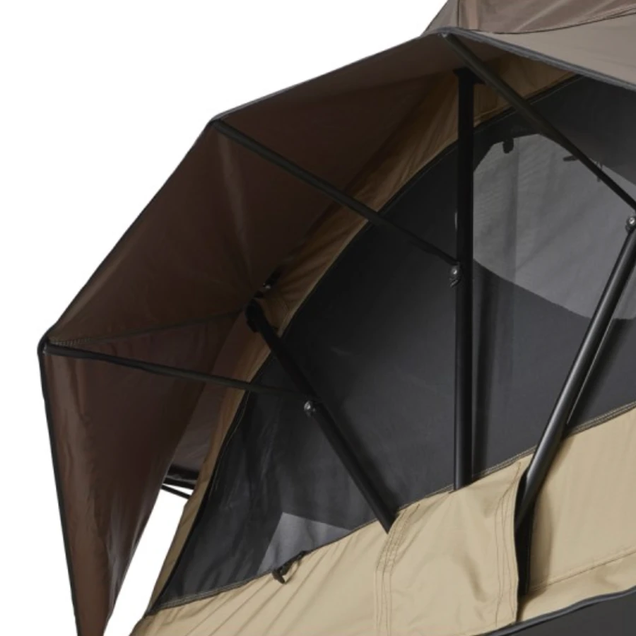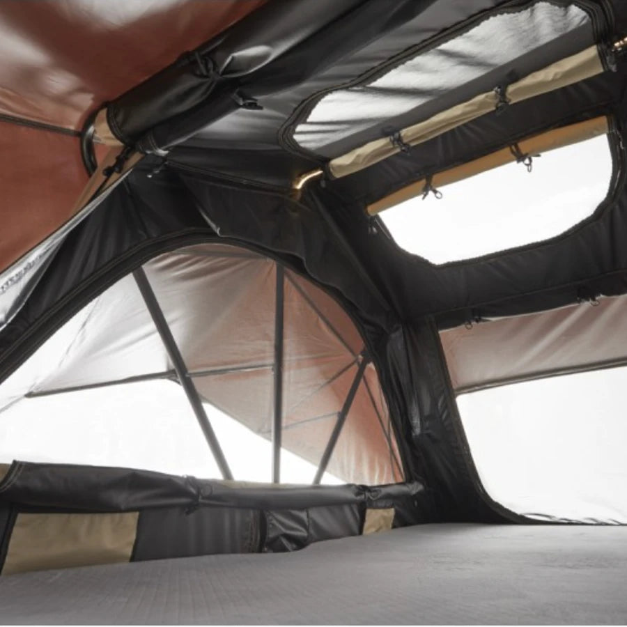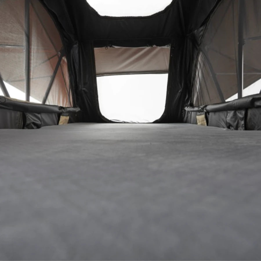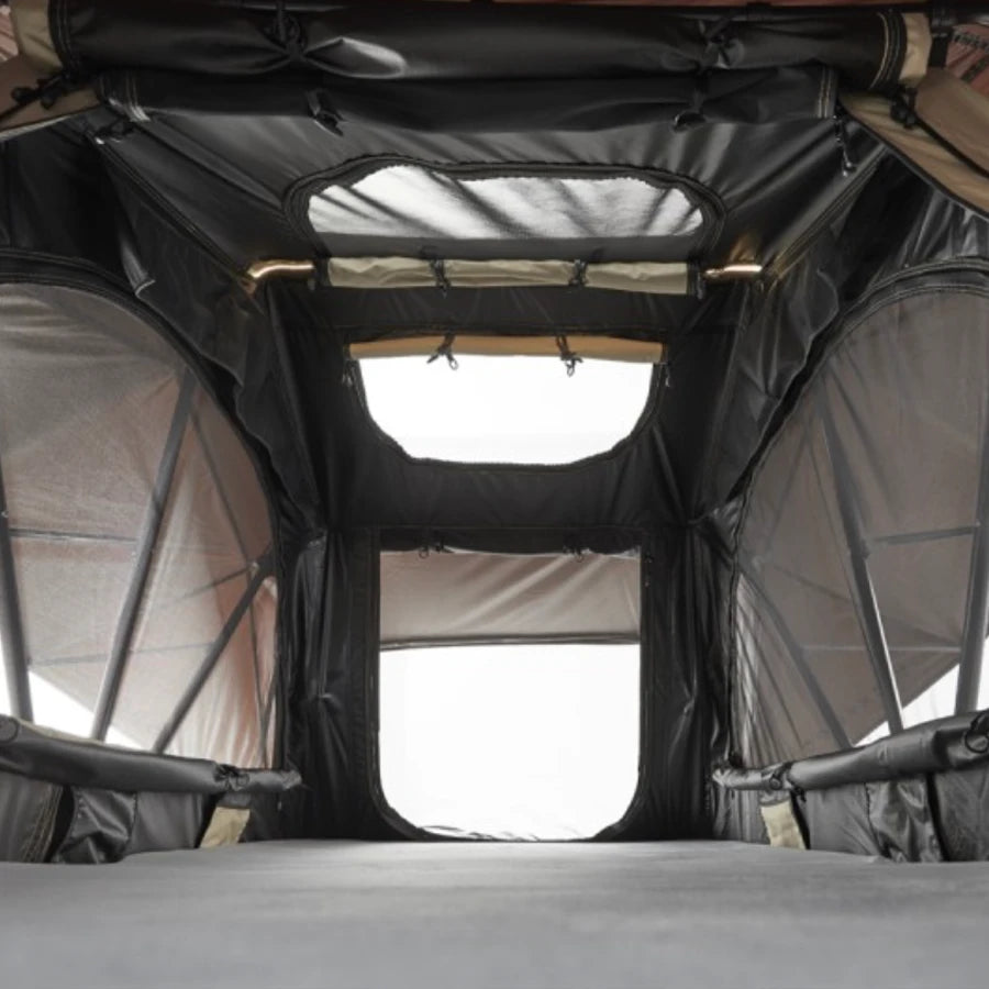 Sein Aluminiumrahmen garantiert Langlebigkeit für jedes Abenteuer. Die Innenmaterialien aus Rip-Stop-Polyester und die PU-Beschichtung machen das Dachzelt reißfest und garantieren optimalen Komfort.