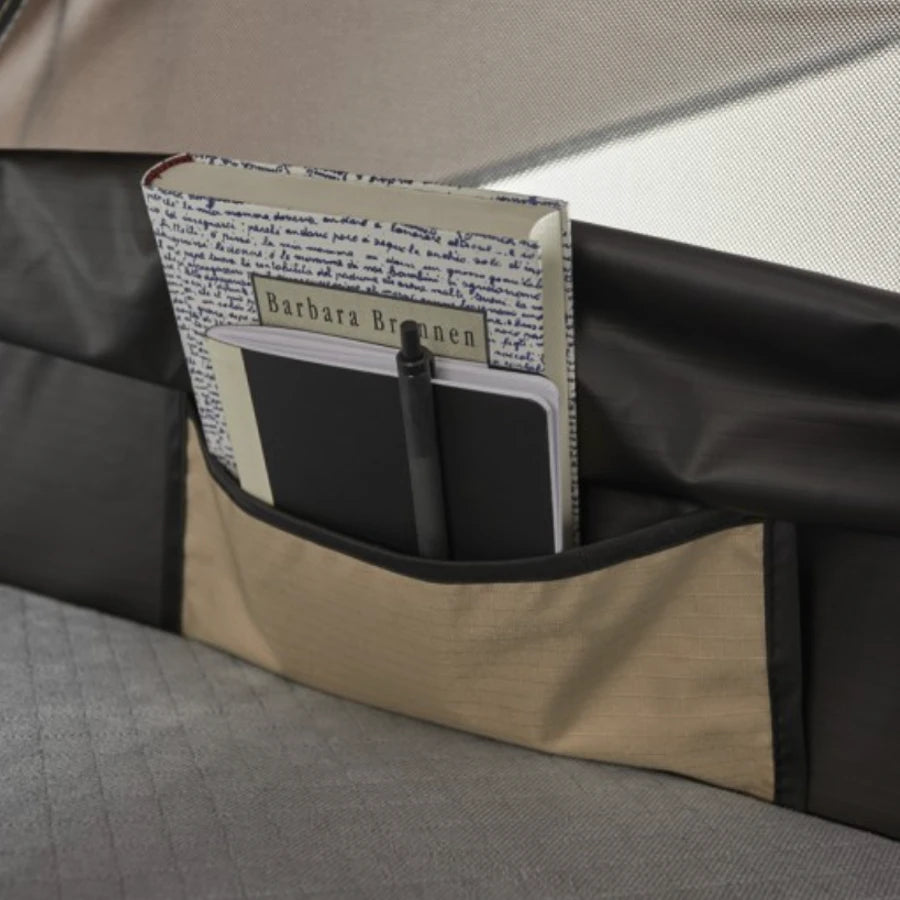 Das Dachzelt Little Bamboo 125 Gen.2 verfügt über eine Schuhtasche und eine Tasche zur Aufbewahrung von Utensilien am Eingang des Zeltes . Im Zeltinneren ermöglichen zahlreiche Taschen und Aufbewahrungsmöglichkeiten die Aufbewahrung Ihrer persönlichen Gegenstände wie Telefone, Schmuck oder sogar Ihre Bücher, damit diese über Nacht nicht verloren gehen.
