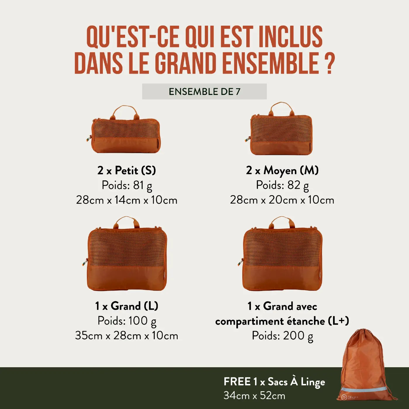 The Travel Dude brand storage and compression set allows you to sort and organizeyourclothes easily and quickly during your nomadic travels.