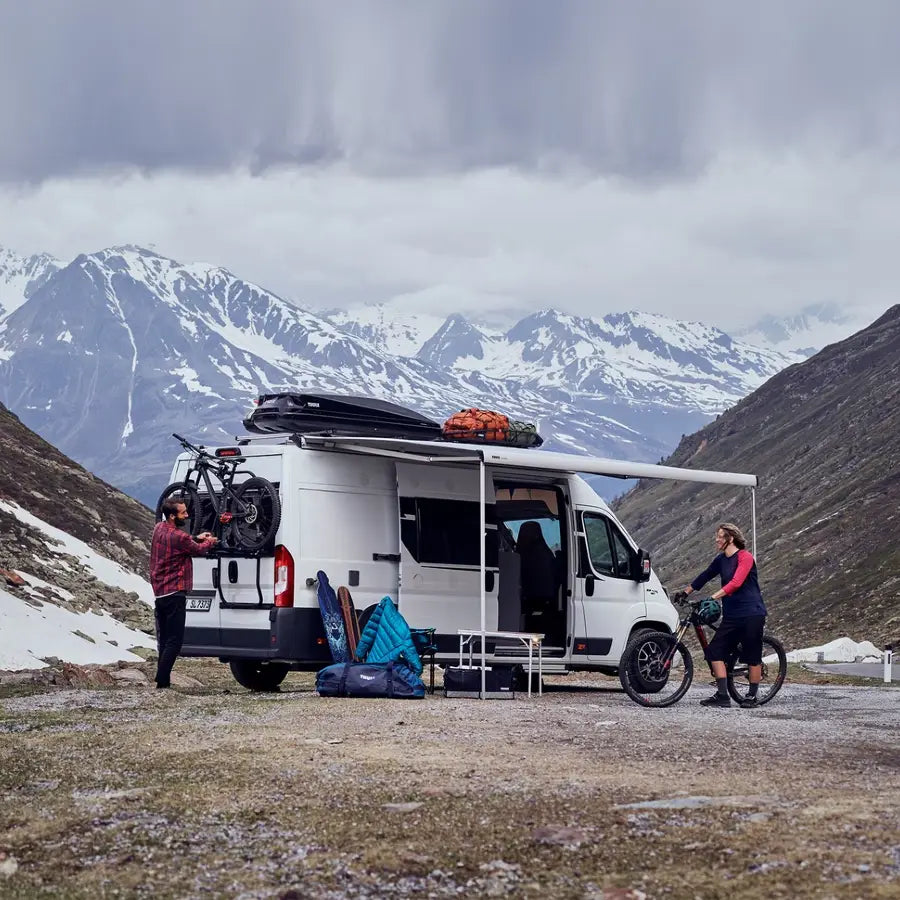 The Elite Van XT Aluminum Gray bike rack from Thule is a bike rack for fitted vans with double rear doors. It can support 2 non-electric bikes.