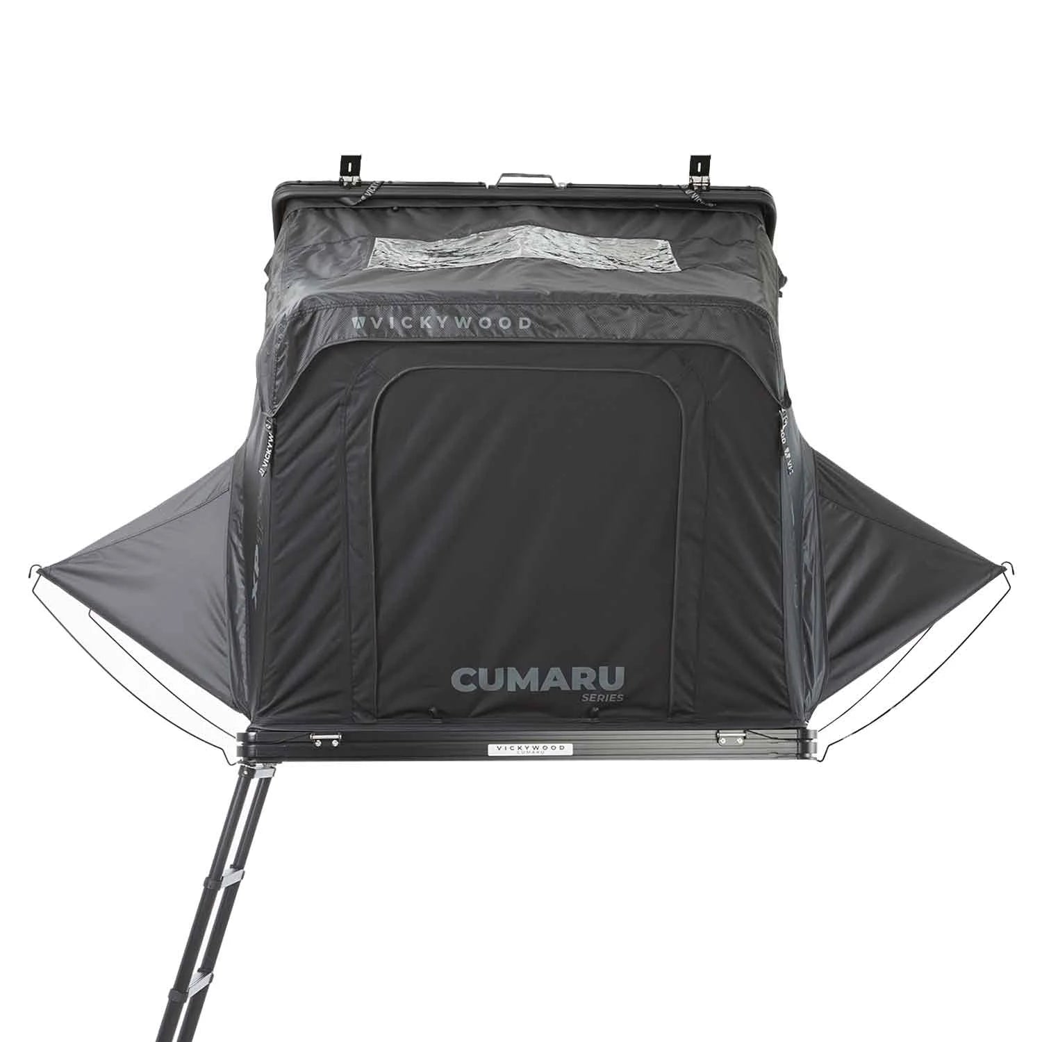 La tente de toit à coque rigide CUMARU XP 135 de la marque allemande Vickywood est un modèle haut de gamme de type "triangle", conçu pour les voyageurs en van, 4x4 et SUV qui recherchent une installation instantanée et une résistance maximale aux éléments.