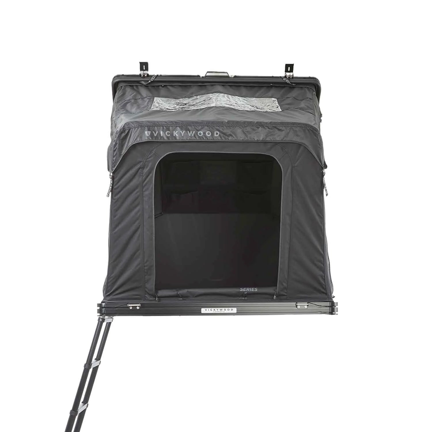 La praticité est poussée dans les moindres détails. La tente est livrée avec une échelle télescopique en aluminium réglable jusqu'à 2,30 m, s'adaptant à toutes les hauteurs de véhicules. La fermeture est sécurisée par des boucles de verrouillage robustes, et le design "All Black" apporte une touche d'élégance sobre et moderne à votre équipement d'aventure.