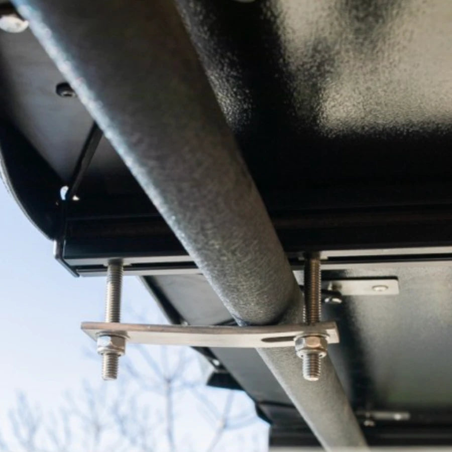 Si l’espace dont vous disposez n’est pas suffisant, vous devrez déplacer les fixations prépositionnées sur la tente de toit afin d’adapter votre véhicule au modèle que vous avez choisi en reperçant le plancher de la tente de toit.