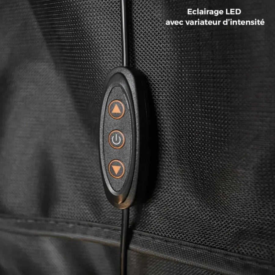 La tente de toit est équipée d’un éclairage LED intérieur et extérieur très ingénieux. Les 2 bandes LED réglables en intensité offrent un éclairage ambiant agréable et une lumière naturelle (blanc chaud). Les 2 bandes LED peuvent se connecter à n'importe quelle source d'alimentation 12V via un port USB.