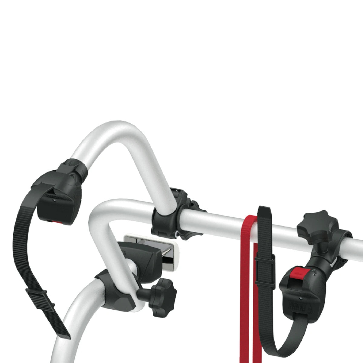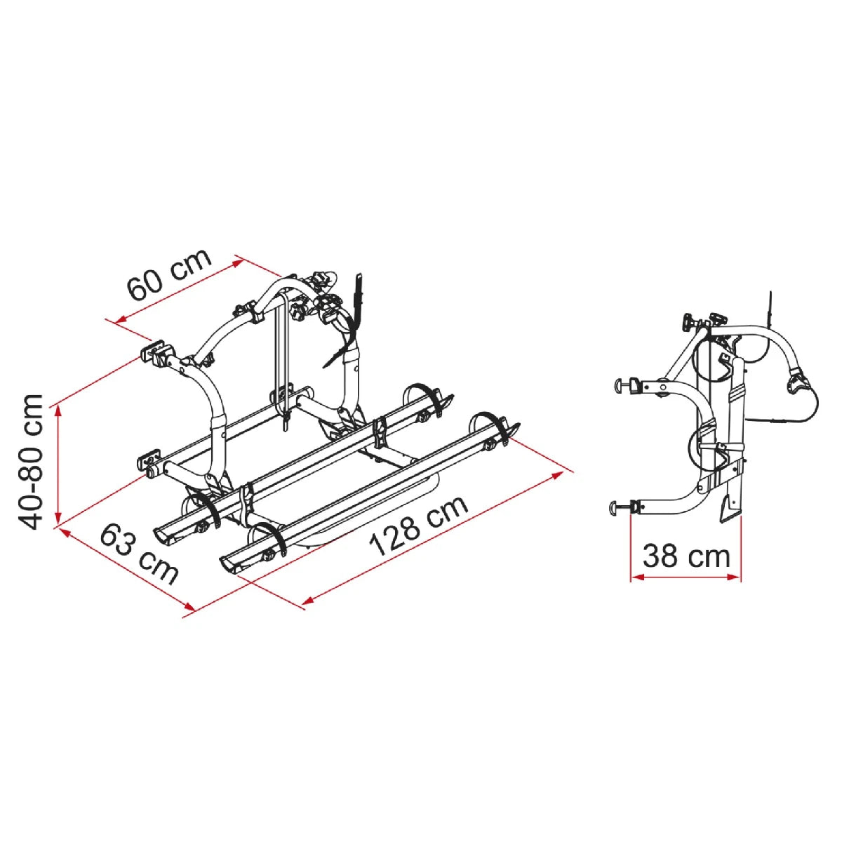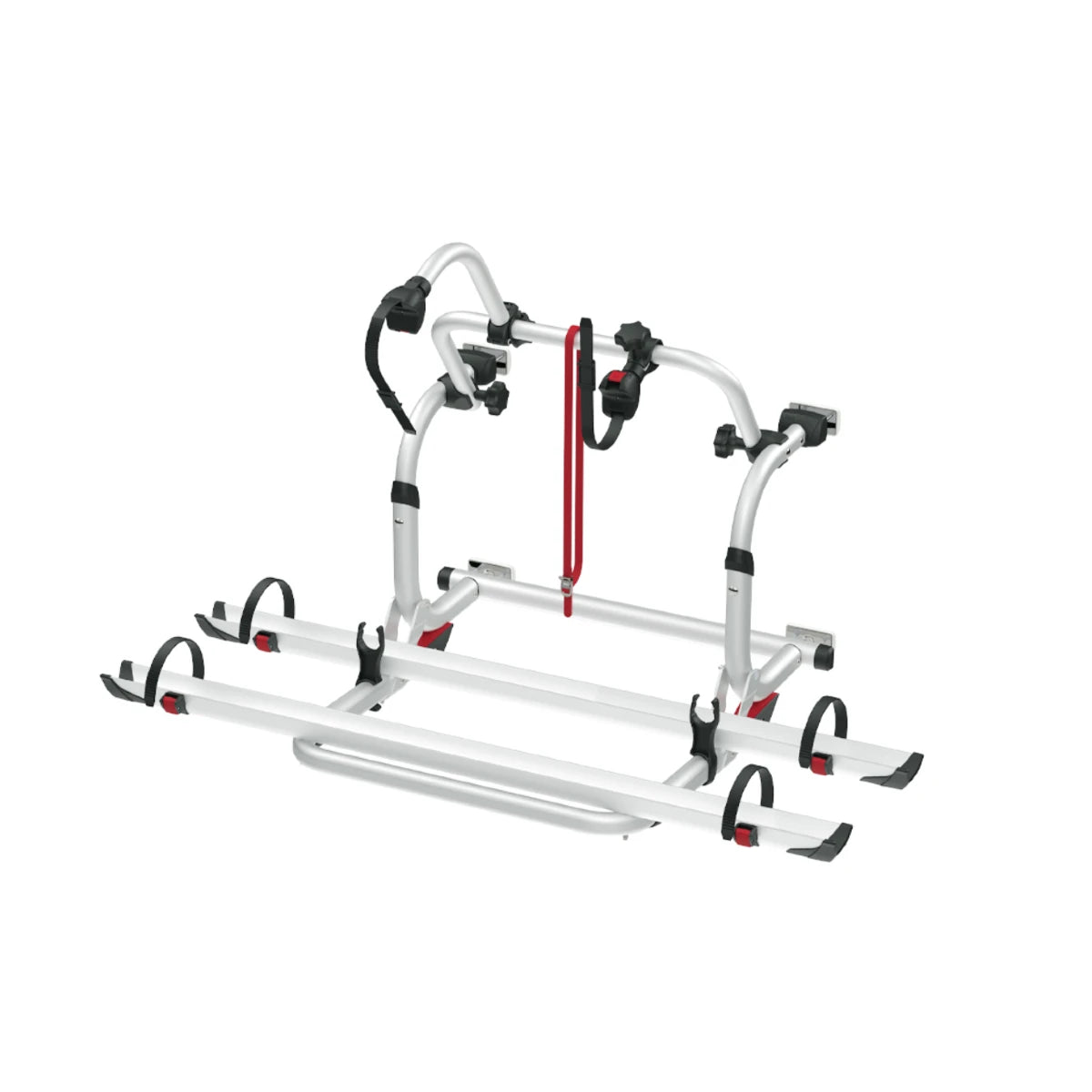 Il portabici si fissa sulla parete posteriore del tuo camper. La struttura telescopica regolabile da 80 a 150 cm si adatta perfettamente ai diversi tipi di montaggio. Le fissazioni superiori possono essere regolate a diverse altezze.