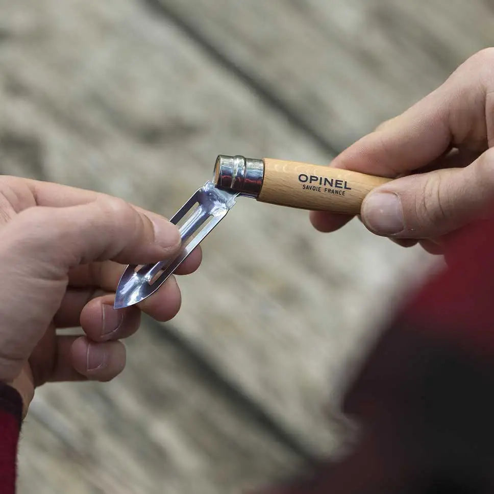 Il pelapatate tascabile N°06 della marca Opinel diventa rapidamente indispensabile per cucinare e sbucciare frutta e verdura.