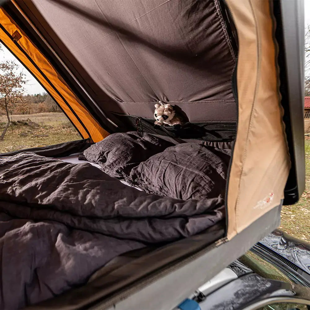 La tenda da tetto Hussarde Duö è compatta ed è ideale per tutti i viaggiatori che vogliono partire in road trip con il loro veicolo e dormire dove vogliono!