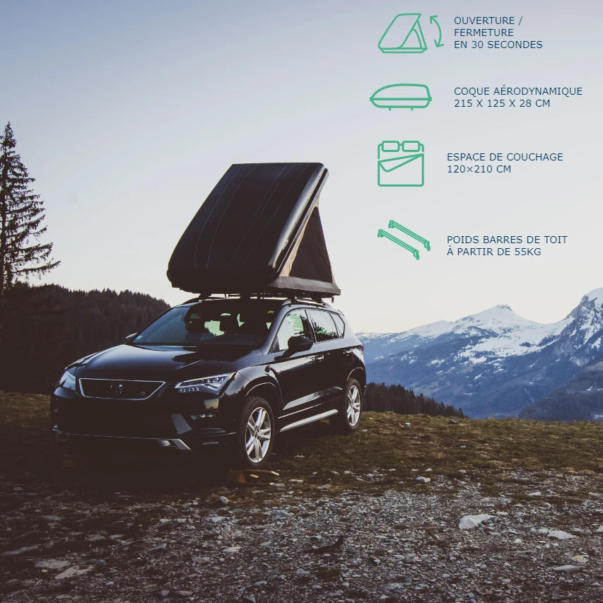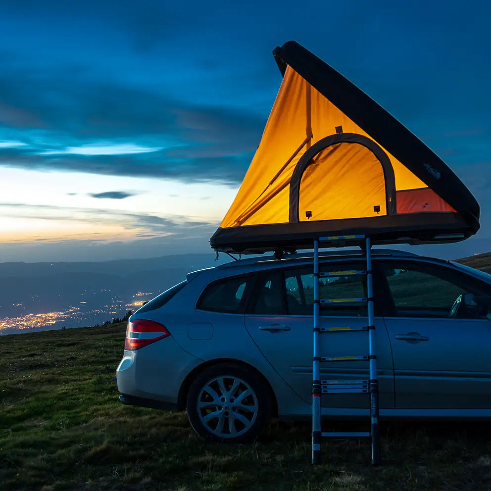Con la sua apertura facile, la tenda da tetto si installa semplicemente in 30 secondi e ti permette di goderti immediatamente la tua tenda da tetto, ovunque tu sia. Per aprirla, basta sganciare i 2 ganci, il guscio si alza da solo. Poi non resta che aprire la scala e il gioco è fatto!