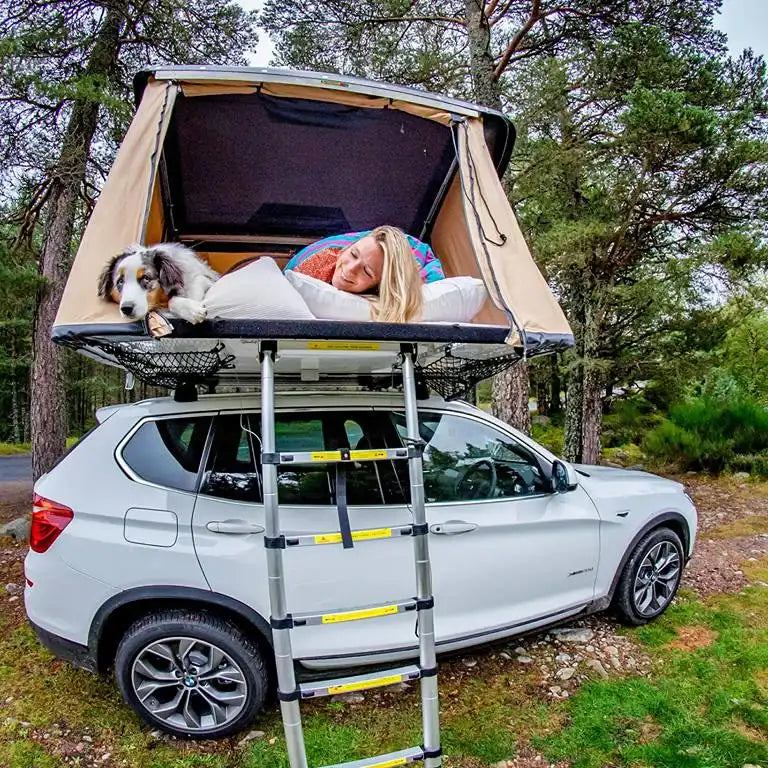 Potrai così goderti immediatamente la tua tenda da tetto, ovunque tu sia. Per aprirla, basta sciogliere i 2 ganci, il guscio si solleva da solo. Poi non resta che aprire la scala e il gioco è fatto!