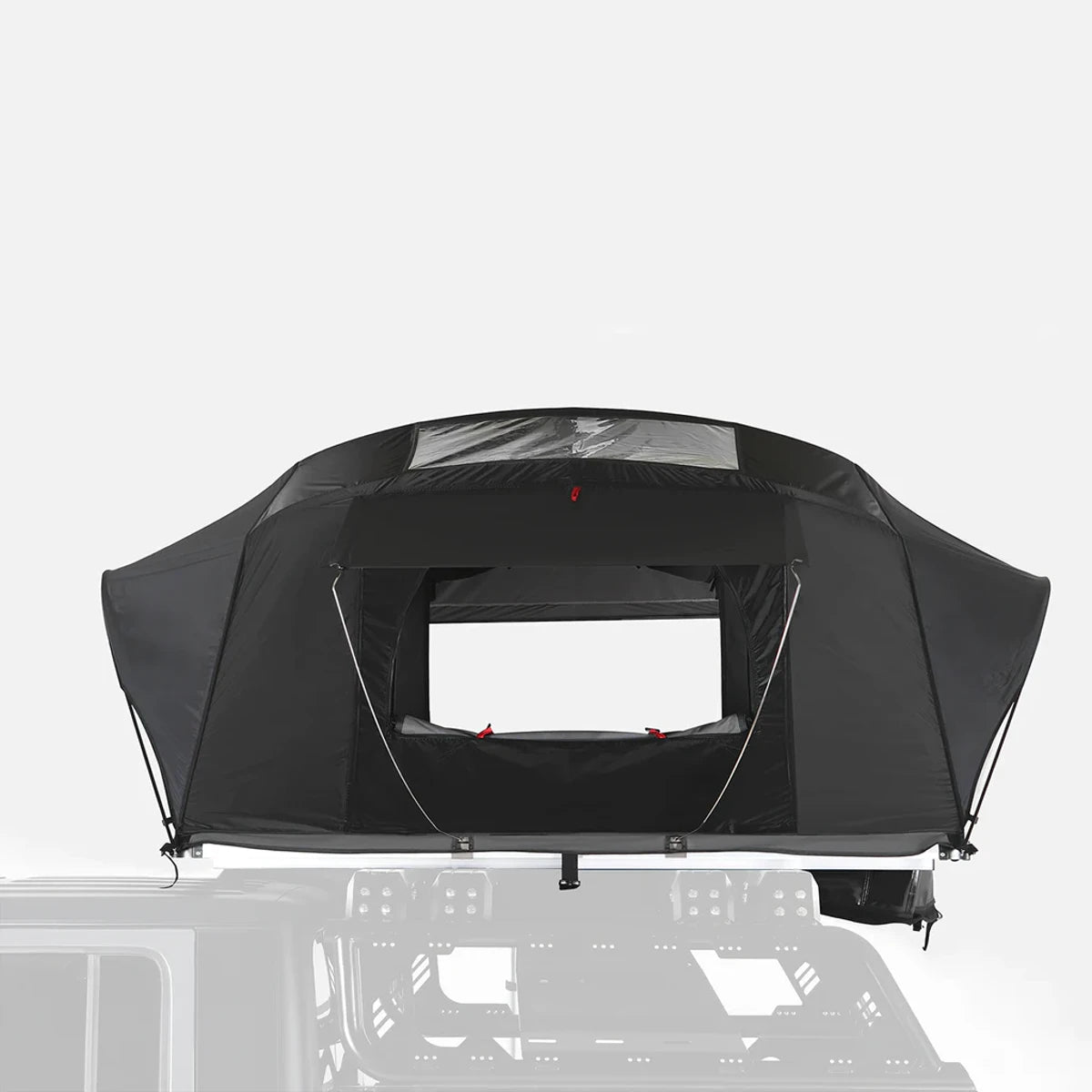 La tenda da tetto X-Cover 2.0 è stata anche progettata con un doppio tetto impermeabile in poliestere 75D ripstop con rivestimento idrorepellente ecologico. Il doppio tetto è rimovibile e permette di godersi appieno il paesaggio quando il meteo lo permette.