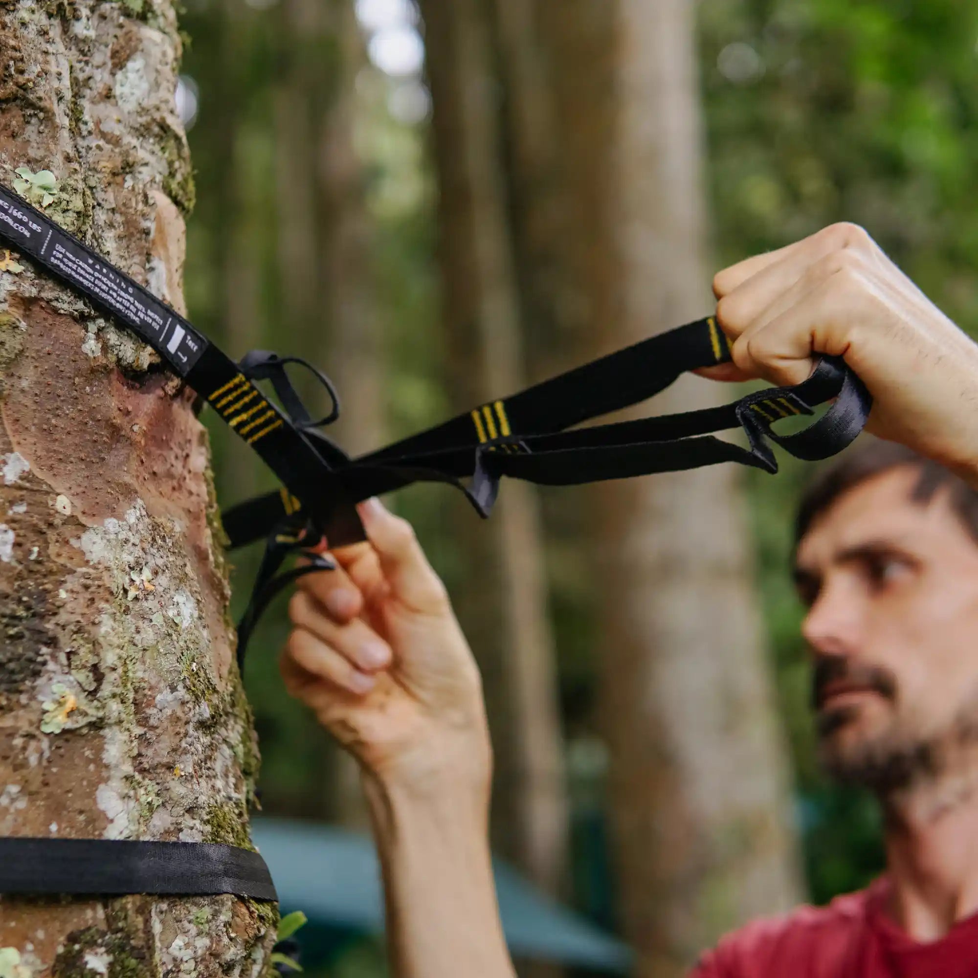 Albero, palo, trave, auto… fissa la tua amaca dove vuoi facilmente con queste cinghie robuste e antiscivolo. Possono sostenere più persone (fino a 300kg).