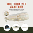 De compressiezakken zijn uitgerust met een specifieke technologie: elke zak heeft extra ritsen die helpen om de kleding te comprimeren om ruimte te winnen(uitgezonderd waszak).