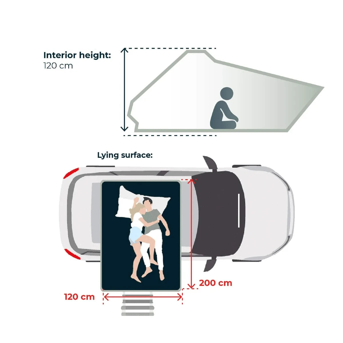 De daktenten worden makkelijk op de dakdragers geplaatst van je auto, SUV, 4x4, busje of omgebouwde bestelwagen. Eenmaal geïnstalleerd, verandert hij het dak van je auto in een slaapruimte binnen enkele minuten en kan hij tot 5 personen.