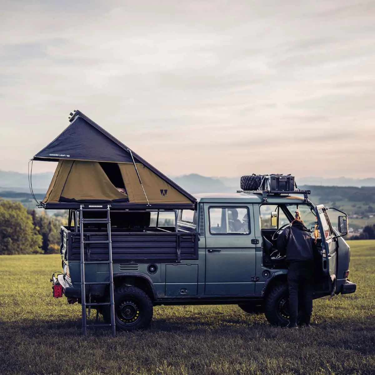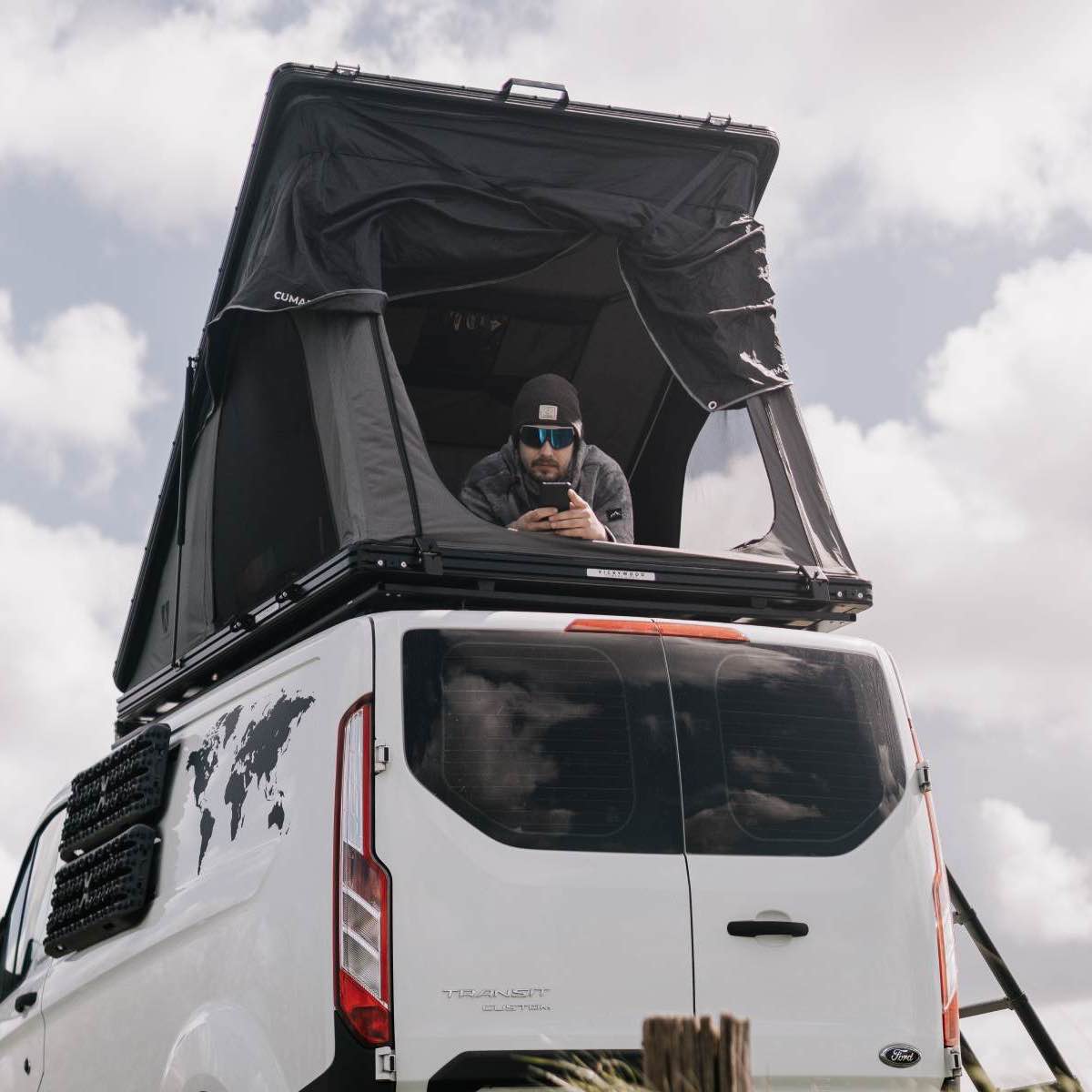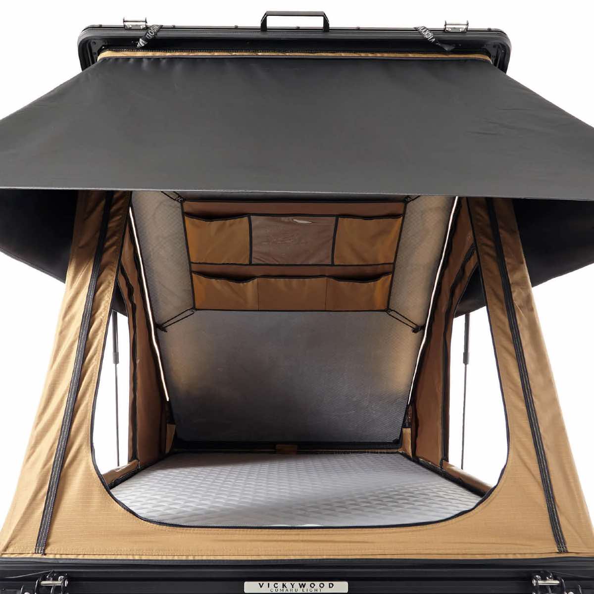 De harde daktent Cumaru Light 152 van het Duitse merk Vickywood is een daktent die praktisch combineert, compactheid en kwaliteit.