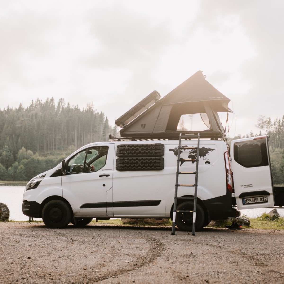 De dak tent Cumaru Light 152 is zeer robuust dankzij zijn zeer stevige aluminium harde schaal en zijn hoogwaardige gerecyclede polyester Ripstop stof (320 g/m²). De stof is gecoat met PU met een waterkolom van 5.000 mm, wat zorgt voor een uitstekende waterdichtheid en weerbestendigheid.