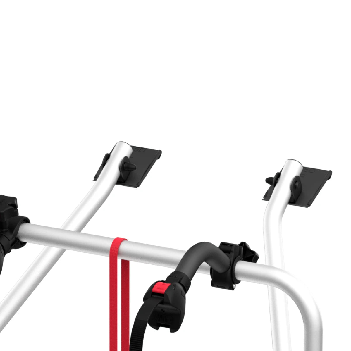 Este suporte para bicicletas é prático, robusto e estável com uma montagem (e desmontagem) fácil. Muito rápido de instalar, não necessita de perfuração na carroçaria e instala-se graças às suas patilhas fornecidas de série.