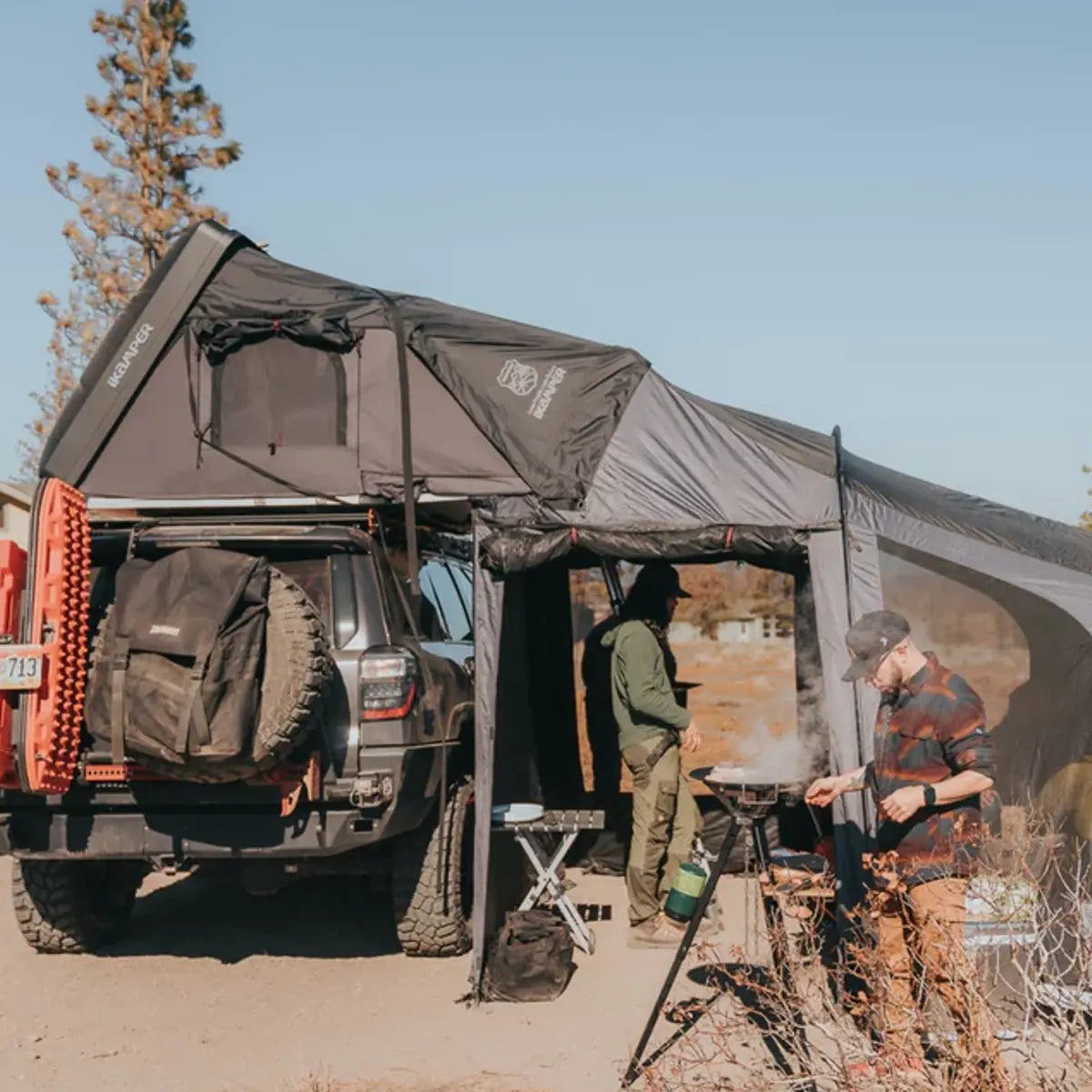 OAnnexe Plus da marca iKamper é o acessório ideal para ampliar o seu espaço de vida e assim ganhar espaço durante as suas viagens nómadas, estando protegido(a) contra as intempéries.