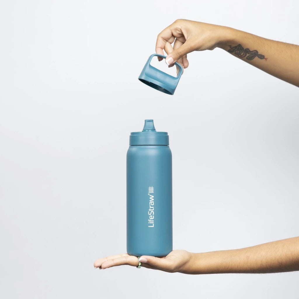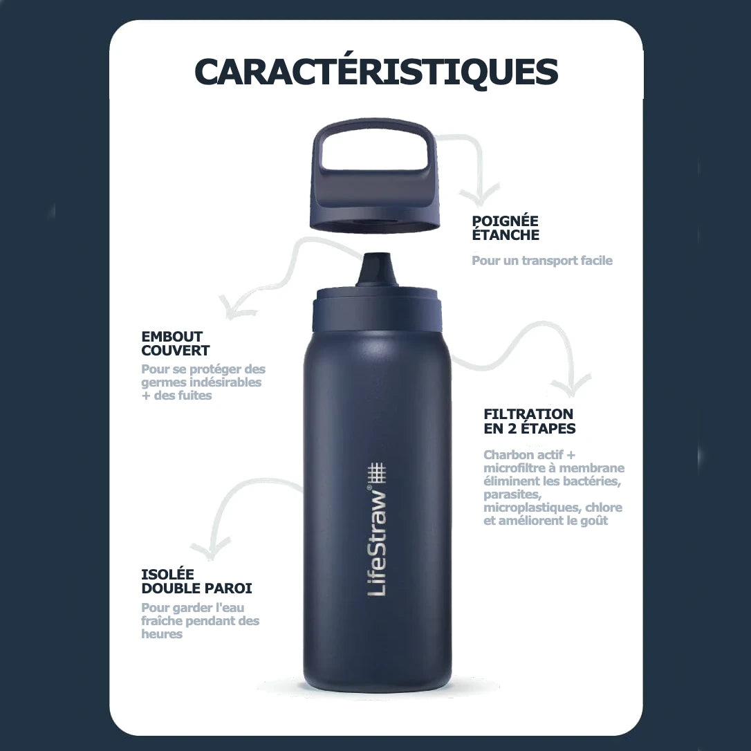 Garrafa filtrante isotérmica em inox - Série Go 70cl (azul lagoa)